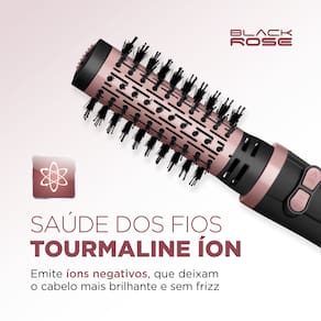 A escova rotativa Black Rose vai deixar seu dia a dia muito mais prático! Com ela, você seca, alisa e modela os cabelos com uma única mão. A escova também cuida da saúde dos fios, pois tem revestimento cerâmico com Tourmaline Íon, que fecha as cutículas das mechas, deixando-as mais macias, brilhantes e sem frizz. Saiba mais sobre a ERB-01 da Mondial: