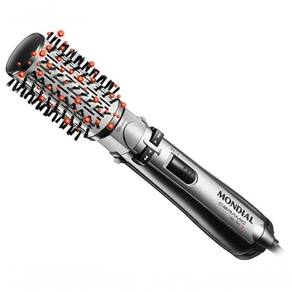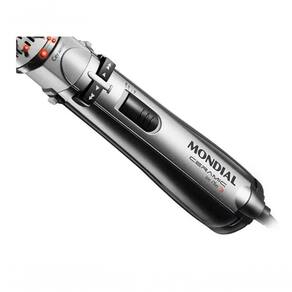 Escova Rotativa Mondial 5x1 Secadora 900w 127v Esta Escova Rotativa Motorizada modela, seca, alisa e define cachos em minutos; modela fios encaracolados, traz volume e vida aos cabelos lisos e com química, dando balanço e movimento. Com sua potência de 900W ela alisa cabelos secos, úmidos e mesmo molhados, com praticidade e rapidez. Tecnologia Tourmaline Íon você já sabe: emite e libera íons (cargas elétricas) que neutralizam a eletricidade estática dos cabelos, o que ajuda a reduzir aquele arrepiado chato. A maioria dos consumidores destaca a praticidade e a eficácia do produto na secagem e modelagem dos cabelos, resultando em avaliações positivas sobre seu desempenho e facilidade de uso. Apesar de alguns relatos sobre aquecimento excessivo, a funcionalidade e o resultado final são amplamente elogiados Especificações:Potência 900W.Material/Cor PP - Cor preto com prata.Funções ModelaIndicado para cabelos Todos os tipos de cabelosTemperatura Estável e uniforme SimTempo aproximado de aquecimento 01 minuto.Sistema de aquecimento revestimento em cerâmica.Tecnologia Cerâmica SimÍons SimVelocidades Quantidade 01Função modelar os cabelos.Recursos extras Ar frioCabo de energia giratórioSistema automático Sim.Funcionamento Com fioAlimentação 127 VoltsConsumo aproximado de energia 0,90 kWh.Comprimento do fio 1,9 m.Peso aproximado Peso do produto 0,55 kg.Peso do produto com embalagem 0,7 kg.Dimensões do produto Produto (L x A x P): 8 x 25 x 8 cm.Dimensões da embalagem Dimensões da embalagem (L x A x P): 14,5 x 27 x 9 cm.