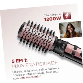 Ela realiza 5 funções: seca, alisa, modela, define cachos e finaliza franjas e pontas.