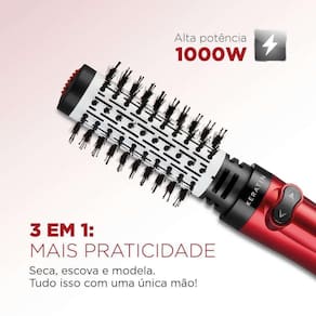 Conheça a Escova Rotativa Mondial ER11KR 1000W Vermelho, ela possui revestimento cerâmico com queratina para proteger seus fios, também conta com cabo giratório e além disso ela é 3 em 1 tendo em vista que seca, alisa e modela seus cabelos da forma que você se sentir melhor! Voltagem: 220V | Cor: Vermelho