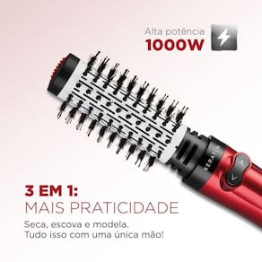 Dois ajustes de temperatura e ar frio que proporcionam o melhor ajuste de acordo com o tipo de cabelo e resultado desejado. A Escova Rotativa Red Infinity Keratin possui 1000 W de potencia, ideal para secar e modelar os cabelos com praticidade e rapidez.