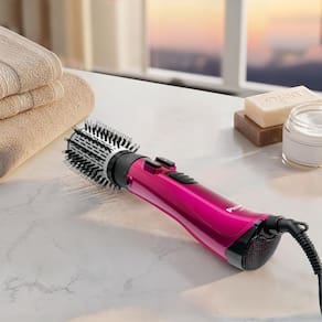 O design inteligente da PERE01, com cabeça removível, permite alternar entre secador e escova rotativa, enquanto as multicerdas modelam e desembaraçam com suavidade. O duplo sentido de rotação da Escova Rotativa Philco oferece liberdade total para criar o estilo que quiser, seja com pontas viradas ou fios lisos e alinhados.