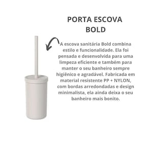 A escova sanitária Bold combina estilo e funcionalidade. Ela foi pensada e desenvolvida para uma limpeza eficiente e também para manter o seu banheiro sempre higiênico e agradável. Fabricada em material resistente PP + NYLON, com bordas arredondadas e design minimalista, ela ainda deixa o seu banheiro mais bonito.
