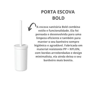 A escova sanitária Bold combina estilo e funcionalidade. Ela foi pensada e desenvolvida para uma limpeza eficiente e também para manter o seu banheiro sempre higiênico e agradável. Fabricada em material resistente PP + NYLON, com bordas arredondadas e design minimalista, ela ainda deixa o seu banheiro mais bonito. Características do Produto: