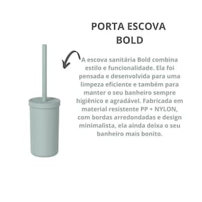 A escova sanitária Bold combina estilo e funcionalidade. Ela foi pensada e desenvolvida para uma limpeza eficiente e também para manter o seu banheiro sempre higiênico e agradável. Fabricada em material resistente PP + NYLON, com bordas arredondadas e design minimalista, ela ainda deixa o seu banheiro mais bonito. Características do Produto: