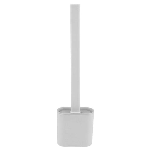 Escova plástica com cerdas flexíveis de silicone, ideal para limpar os cantos das privadas.