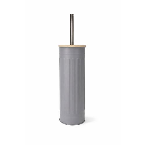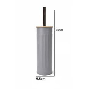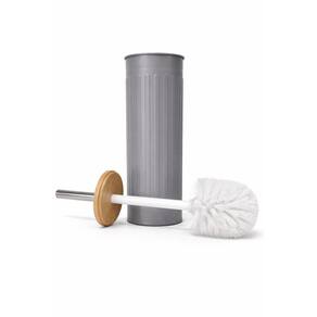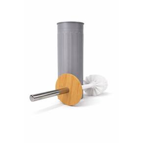 Escova Sanitária Com Tampa de Bambu Fluted 9,5x9,5x38cm Jolitex Cinza -