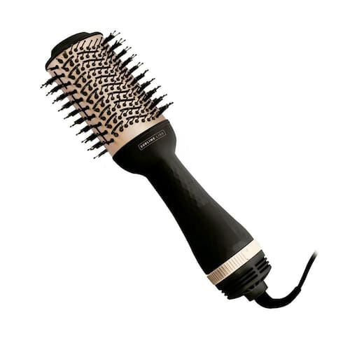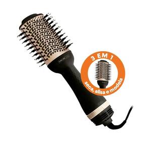 A escova secadora possui 3 temperaturas e um fluxo de ar intenso para garantir uma secagem rápida enquanto alinha os fios.