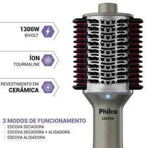 Modelo: PES30 Marca: Philco Potência: 1.300W Voltagem: Bivolt automático (127V/220V) Níveis de temperatura: 2 + ar frio Cabo elétrico: Giratório 360°, com aprox. 1,8m Material do corpo: Plástico resistente com detalhes em acabamento metálico Cor: Prata com detalhes rosa