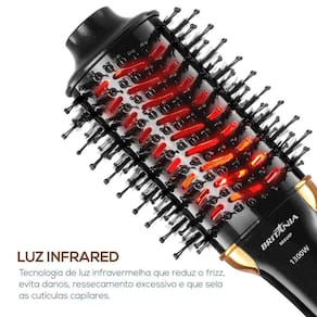 A tecnologia Infrared da Escova Secadora é a emissão de luz infravermelha que ajuda a restaurar os danos causados aos fios, hidrata o cabelo evitando o ressecamento excessivo, é antifrizz e sela as cutículas capilares. Assim os cabelos crescem mais rápido e mais saudáveis!