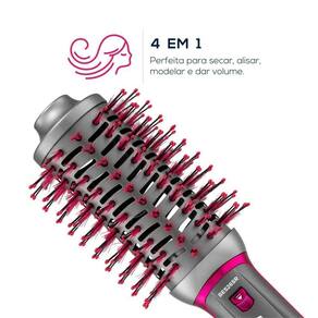 Com cabeça redonda e removível, a Escova Secadora pode ser utilizada como secador. E por possuir cerdas duplas, em dois tamanhos e tipos diferentes, ela se adapta a todos os tipos de cabelos, aderindo melhor aos fios.