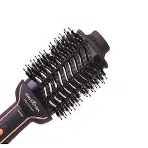 Características: Potência: 1200W; 3 em 1: Alisa, modela e seca; 3 temperaturas e 2 velocidades: Perfeita para todos os tipos de cabelos; Revestimento em Nano Cerâmica: Com Nano partículas em cerâmica que evitam o ressecamento e o atrito, protegendo os fios do calor e proporcionando brilho ao cabelo; Íon Tourmaline: Os íon negativos eliminam a estática gerando maciez e eliminando o frizz, mantendo a umidade natural dos fios; Formato oval: Para elevação extra nas raízes, corpo liso e pontas enroladas; Aberturas de ventilação: Melhor abertura para a passagem de calor, Proporcionando uma secagem mais rápida e eficaz; Funciona como secador; Pode ser utilisado no cabelo molhado, úmido e seco; Cerdas em nylon; Cordão giratório; Cordão elétrico com 1,50M.