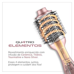 Ele possui 1300 W de potencia, alem de ser uma escova 3 em 1: ela seca, alisa e modela. Alem disso, o produto conta com revestimento em Ceramica, Titanio, Tourmaline e Nano Silver, para transformar os seus cabelos do jeito que quiser.