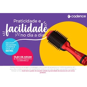 Não perca tempo e adquira já sua ESCOVA SECADORA CADENCE 4 EM 1 e tenha o poder do secador aliado à praticidade da escova em um único produto.