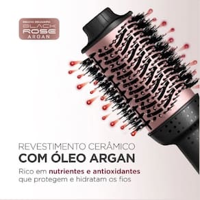 Diferencial do Produto: Revestimento com Óleo de Argan: A escova tem revestimento com óleo de Argan, um ingrediente rico em nutrientes e antioxidantes. Com o calor da escova, Argan penetra no cabelo e deixa os fios mais protegidos e hidratados. Perfeito para a saúde das mechas! Escova 3 em 1: Você seca, alisa e modela utilizando apenas um produto e com uma única mão. É muita praticidade! Bivolt Chaveado: Ajuste a chave seletora e use a Escova Secadora Mondial em tomadas 127V e 220V. Alta Potência: São 1.200W para secar seu cabelo com rapidez e eficiência. Design Oval: FACILITA A ESCOVAÇÃO O formato da escova secadora é perfeito para alisar, além de também ser um aliado para quem quer dar volume às mechas. 3 Variações de Temperatura: Ajuste a intensidade do calor de acordo com seu tipo de cabelo. Cerdas Mistas: Os formatos diferentes permitem alinhar e modelar o cabelo ao mesmo tempo. Ponta Fria: A ponteira da escova Mondial não aquece e protege suas mãos durante o uso. Cabo 360°: O fio é giratório e não enrola durante o uso. Cabo embolado nunca mais!