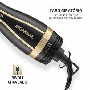 Escova Secadora de Cabelo Mondial ES-15 Gold Argan 3 Em 1