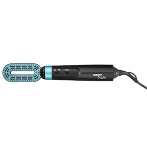 A escova, com cerdas resistentes, garante melhor tração do cabelo, enquanto seca e desembaraça protegendo o couro cabelo.