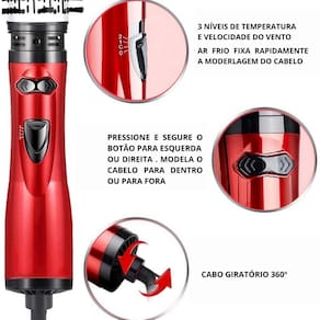Com um sistema de rotação 360º em duas direções, essa escova possui a praticidade de um secador e a versatilidade de um modelador, permitindo que você conquiste penteados incríveis de forma rápida e descomplicada. Adeus aos dias em que você precisava usar vários aparelhos diferentes para obter o resultado desejado!