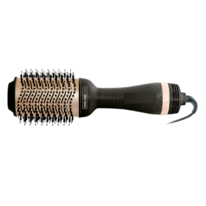 A escova secadora possui 3 temperaturas e um fluxo de ar intenso para garantir uma secagem rápida enquanto alinha os fios.