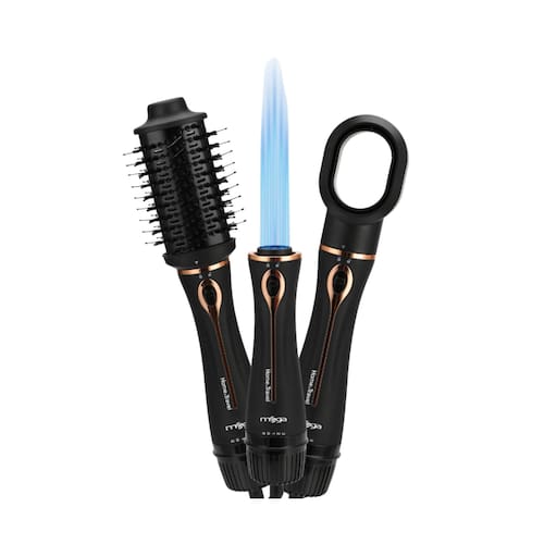 A escova secadora HOME & TRAVEL tem a potência de um secador e a versatilidade de uma escova. O conjunto da escova HOME & TRAVEL é composto por 3 peças: um aparelho secador, um direcionador de ar e uma escova modeladora, a única que realmente entrega a função 3 em 1 de verdade.