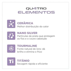 Titânio: Tecnologia que age na umidade dos cabelos e reduz o tempo de secagem, além de eliminar o efeito frizz.