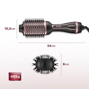 Design Oval: Facilita a escovação, sendo ótimo para alisar e também para dar volume às mechas.