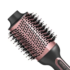 As cerdas de nylon desembaraçam suavemente o cabelo, enquanto as cerdas de javali ajudam a distribuir os óleos naturais do couro cabeludo, proporcionando um cabelo mais liso e sedoso. O cabo da escova secadora é projetado ergonomicamente para facilitar o manuseio e o uso confortável, minimizando a fadiga durante o processo de secagem e modelagem.