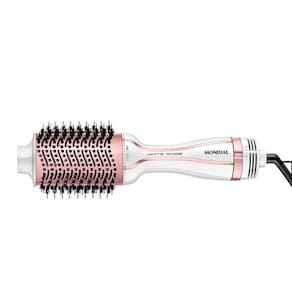 Escova Secadora Mondial White Rose A praticidade da escova com o poder do secador modele seus fios com uma única mão Características: - 3 em 1 Seca, Alisa e Modela - Tourmaline é um mineral que, ao ser ativado pelo calor, emite íons negativos. Os íons fecham as cutículas dos fios e diminuem a Eletricidade estática. O resultado é um cabelo mais macio, brilhoso e sem frizz. - A Escova Secadora da linha White Rose tem alta potência e proporciona uma secagem rápida e eficiente. - O design oval é um aliado na hora de alisar as mechas, pois proporciona maior tração nos fios com o movimento de escovação - Possui dois tipos de cerdas com alturas diferentes para otimizar a tração dos fios. As cerdas flexíveis com pontas arredondadas Alinham os fios, enquanto as cerdas menores de nylon são perfeitas para modelar o cabelo. - Praticidade + segurança: a ponta fria pode servir de apoio enquanto você modela o cabelo, protegendo as mãos do calor da escova. - Garante maior autonomia de movimento durante o uso. Cabo embolado nunca mais - A Escova Secadora é leve, de manuseio fácil e confortável. O resultado é maior praticidade durante o uso. Especificações: - Voltagem: Bivolt chaveado - Potência: 1200w - Quantidade de Temperaturas: 3 Conteúdo da embalagem: - 1 Escova Secadora Mondial - Manual de instruções - : 12 meses pelo Fabricante Marca: Não Informado