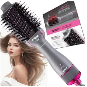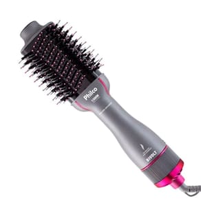 Escova Secadora Philco 3x1 Bivolt 1300w Tourmaline íons escova secadora Bivolt da Philco é um produto que une duas funções em um único aparelho: escova e secador. Com cerdas naturais, essa escova pode ser utilizada para alisar, modelar e dar volume aos cabelos, ao mesmo tempo em que o seca. Seu cabo giratório de 360 graus facilita o manuseio, e o cabo de alimentação de 1,8 metro garante mobilidade durante o uso. Além disso, a escova conta com uma tecnologia de íons negativos, que ajuda a reduzir o frizz e aumentar o brilho dos cabelos. Com potência de 1300W, ela é indicada para cabelos curtos ou médios, e seu design ergonômico e moderno garante conforto e praticidade ao utilizá-la.CaracterísticasMaterial: Metal e Plástico.Potência: 1300W.4 em 1: Seca, alisa, modela e dá volume.Velocidades: 2.Temperaturas: 3.Cordão elétrico: 1,8 metros.Cerdas naturais.Luz infravermelha.Libera tourmaline íons.Tubo com revestimento em cerâmica.Especificações técnicasMarca: Britânia.Dimensões do produto (LxAxP): 40,5cm x 8,4cm x 11cm.Peso: 550g.Cor: Cinza com Rosa Ean: 7891356107696