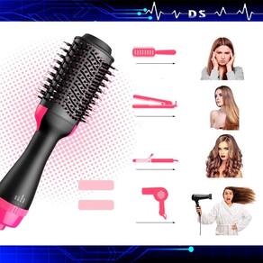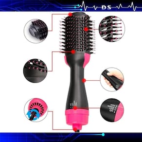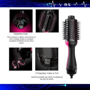 escova secadora elétrica 3 em 1 escova perfeita cor: preto e rosa voltagem: 110v funções: secador e alisador potência: 1000 w temperatura: 3 níveis selecionáveis característica: funções de jato de ar quente - gerador de íons - cerdas flexíveis velocidade: 3 níveis de velocidade. Não é com cabo giratório