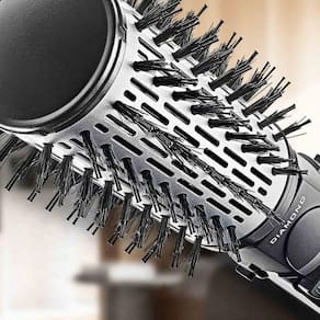 Essa escova rotativa possui cerdas duplas que desembaraçam para secar, alisar e modelar facilmente as mechas.
