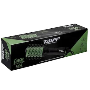 Escova Secadora Taiff Oval Easy 1200W - VerdeCom essa escova ficou muito Easy ter o cabelo que você quiser!Sua potência de 1200W é ideal para secar todos os tipos de cabelos.Ela possui um revestimento térmico e o tamanho ideal que permite alisar e modelar rapidamente.Seu formato oval com cerdas de Nylon de dupla altura garante melhor tração ao cabelo, proporcionando fios com muito mais brilho.Ela conta com 2 temperaturas e ar frio, que garantem resultados incríveis e duradouros. Possui cabo giratório de 1,80m, além de ser compacta e leve.Especificações técnicas- Marca: Taiff- Modelo: Easy Verde- Cor: Preta e Verde- Potência: 1200w- Consumo: 1,20kW/h- Voltagem: 110v ou 220v (Não é bivolt)- Formato oval e cerdas de dupla altura- 3 temperaturas- Ar Frio: Sim- Termostato: Sim- Argola: Sim- Cabo Giratório: Sim- Difusor de Ar: Não- Cabo Dobrável: Não- Motor: DC-18V- Cabo: 1,80M- Cabo Giratório: SimConteúdo da Embalagem- 1 Escova Secadora Taiff Oval Easy 1200W- Manual de instruçõesDimensões e Peso- Produto (A x L x P) 50x50x33cm- Peso 0,469KgGarantia de 6 meses pelo fabricante.