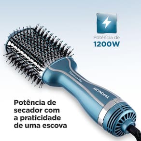 Praticidade com a Escova Secadora Titanium Pro ES-28 Bivolt da Mondial, com tourmaline ÍON, 1.200W/1.300W de potência, cerdas mistas, design oval, cabo giratório e seletor de temperatura tenha cabelos bem penteados, modelados e com mais brilho. Com a tecnologia de tourmaline ÍON a escova libera ÍONS que selam as cutículas dos fios, garantindo mais brilho e menos frizz e seus 1.200W de potência garantem uma secagem rápida e eficiente. A sua função 3 EM 1 permite que você alise, escove e modele o seu cabelo ao mesmo tempo, design oval com ponta fria para ajudar na hora de escovar e modelar, o cabo giratório 360° garante maior praticidade com total autonomia de movimentos durante o uso. A Titanium Pro ES-28 possui também seletor de temperatura com 3 opções para você programar a escova da melhor forma para o seu cabelo! Facilite seu dia a dia com mais praticidade e rapidez, alta tecnologia em apenas um movimento. Bivolt. Cor: Azul. 1 ano de garantia.