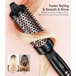 A escova térmica Terviiix de 3 cm é uma ferramenta versátil para criar cachos soltos, raízes volumosas, alcançar um estilo volumoso dos anos 90 e adicionar volume aos cabelos em camadas. Com um barril de cerâmica de turmalina que reduz a estática, controla o frizz e melhora a saúde e o brilho do cabelo, esta escova de cachos aquecida é enriquecida com óleo de argan, queratina e turmalina para liberar íons negativos para proteção contra danos causados pelo calor e redução do frizz. Seu design ergonômico inclui uma cerdas de nylon antiqueimaduras e uma cabeça de escova redonda para distribuição uniforme de calor, adequada para alisar, enrolar ou pentear. O visor LCD personalizável oferece configurações de temperatura de 160 °C a 204 °C, com recursos de segurança como desligamento automático de 60 minutos, cabo giratório de 360° e suporte de voltagem dupla para conveniência em viagens. Com cerdas que não embaraçam, esta escova é essencial para obter um cabelo elegante e saudável. - Obtenha volume de raiz e cachos macios: obtenha raízes volumosas, cachos soltos e um estilo volumoso dos anos 90 usando o pincel de cachos aquecido Terviiix de 3,8 cm. O barril de cerâmica de turmalina minimiza a estática, controla o frizz e aumenta a saúde e o brilho do cabelo, oferecendo a flexibilidade para criar cabelos em camadas com volume adicional. - 4 vezes menos danos e frizz: infundido com óleo de argan, queratina e turmalina, este pincel emite íons negativos para reduzir os danos causados pelo calor e frizz, oferecendo calor uniforme ao cabelo e retém a umidade para cabelos sedosos e saudáveis. - Design redondo exclusivo: o design da cabeça da escova redonda com cilindro revestido de cerâmica de turmalina garante uma distribuição uniforme de calor, enquanto a alça ergonômica e as cerdas de nylon anti-queimaduras facilitam a obtenção de cachos naturais. Use-o para alisar e enrolar o cabelo ou simplesmente como um pente normal. - Dois tipos de dentes de pente: os dentes largos e frios do pente e as cerdas sem emaranhados facilitam a pegada e o deslizamento suave pelo cabelo, evitando o emaranhamento e proporcionando mais conveniência ao modelar seu cabelo. - Múltiplas funções: o visor digital LCD tem várias configurações de temperatura de 160 °C a 204 °C para atender às necessidades de estilo de todos os tipos de cabelo. Ele também tem um recurso de desligamento automático de 60 minutos para segurança, um cabo giratório de 360° para facilitar o uso e tensão dupla de 100-240 V para conveniência de viagem.