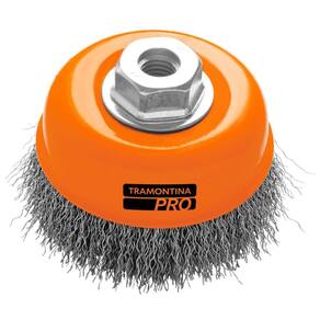 Escova Tipo Copo Arame Ondulado 4'' Escova Tipo Copo Arame Ondulado 4'' Tramontina PRO A linha de escovas da Tramontina PRO é utilizada para fazer a remoção de rebarbas, ferrugens, pinturas, carepas e respingos de solda, proporcionando acabamento em aços, madeiras, tubos e borrachas.