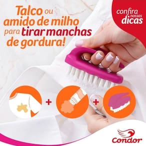 A ESCOVA TIRA-MANCHAS Condor é muito prática para limpar roupas delicadas, calçados em tecido, nobuck e camurça. Ela tem cerdas macias que conferem um limpeza profunda e completa sem danificar os seus calçados, roupas, roupinhas de bebê ou acessórios. Além disso pode ser utilizada na aplicação de alvejantes sem cloro e tira-manchas.