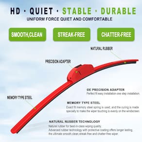 Você tem um limpador de para-brisa vermelho que pode usar. Duas peças adequadas para o braço da lâmina do limpador de para-brisa U/J. A borracha natural oferece excelente desempenho de limpeza e limpeza para limpadores. O design do processo de cor oferece mais opções para limpadores de para-brisa. Limpadores vermelhos de qualidade Autêntico podem ser instalados no seu carro em apenas alguns minutos. As escovas vermelhas estão disponíveis durante todo o ano, limpadores de alta temperatura, limpadores de neve e limpadores de gelo. - ?AJUSTE?Você tem um limpador de para-brisa vermelho brilhante que pode usar. Duas peças adequadas para o braço da lâmina do limpador de gancho U/J. - ?Qualidade?O material de borracha natural oferece excelente desempenho de limpeza e limpeza para limpadores. O limpador vermelho é limpo e sem riscos, oferecendo proteção mais segura durante todo o processo de uso. - ?DESIGN?O design aerodinâmico reduz significativamente o arrasto, o ruído e a elevação do vento. O design sem suporte ajuda a evitar o acúmulo de neve e gelo. Duas molas de aço tensionadas com precisão, juntamente com um spoiler de vento assimétrico, proporcionam distribuição de pressão uniforme e melhor contato com o para-brisa, se adapta à curva do para-brisa, eliminando manchas úmidas que podem impedir sua visão. - ?Instalação?Componentes rápidos e simples da lâmina do limpador de para-brisa vermelho podem ser instalados em apenas alguns minutos sem a necessidade de outros adaptadores. - ?SERVIÇO SEM PREOCUPAÇÕES?A PARRATI oferece 6 meses de serviço pós-venda. Consulte o manual para obter detalhes completos de instalação e verifique se os limpadores vermelhos são adequados para o seu carro.