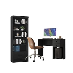 Kit Escritório com Escrivaninha 2 Gavetas com Livreiro Multiuso com 2 Gavetas Preto - Qmovi