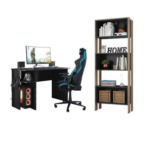 Kit Escritório com Escrivaninha e Livreiro com Nicho - Qmovi