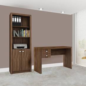 Conjunto para Escritório com Mesa e Estante Nogal - Tecnomobili