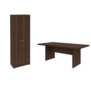 Escritório Com Mesa Para Computador Simples Com Armário 2 Portas Carvalho - Fdecor