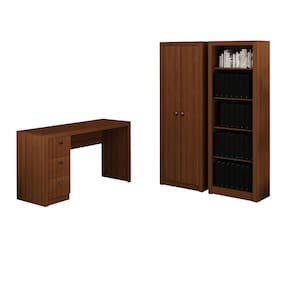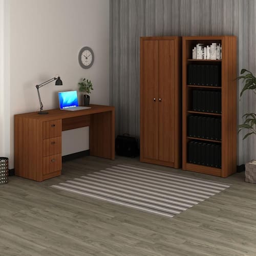 Conjunto para Escritório com Mesa para Computador e 2 Estantes Amendoa - Tecnomobili