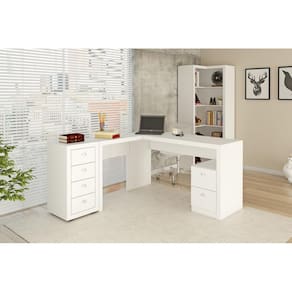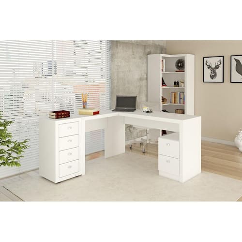 Conjunto para Escritório com Mesa para Computador e Armário Canto Branco - Tecnomobili