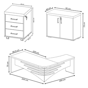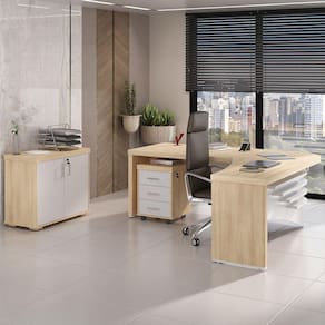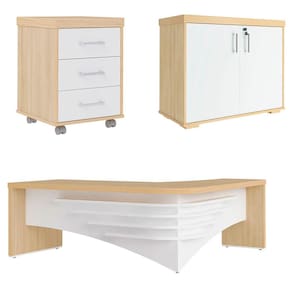 O(a) Escritório Completo Tamburato 2 Portas 3 Gavetas Carvalho/Branco - Artany Móveis é produzido em MDF, MDP e Tamburato na escala de brilho Fosco, e possui um grau de dificuldade de montagem: Médio.