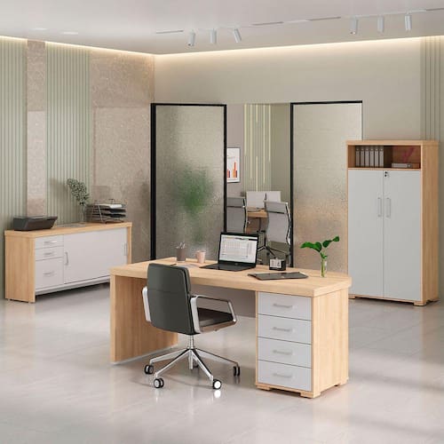 O(a) Escritório Completo Tamburato 4 Portas 7 Gavetas Carvalho/Branco - Artany Móveis é produzido em MDP e Tamburato na escala de brilho Fosco, e possui um grau de dificuldade de montagem: Médio.