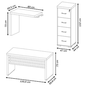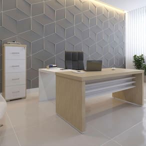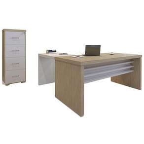 O(a) Escritório Completo Tamburato Carvalho/Branco - Artany Móveis é produzido em MDP e Tamburato na escala de brilho Fosco, e possui um grau de dificuldade de montagem: Médio.
