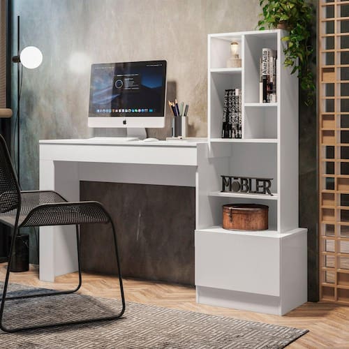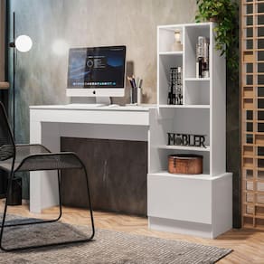 Escrivaninha Office Lion, desenvolvida com o objetivo de estar com você em seus melhores momentos seja ele de estudo ou trabalho, projetada para atender suas maiores necessidades, mantendo a elegância e beleza do produto, o mesmo possui uma biblioteca organizacional lateral que proporciona ao produto um charme excepcional. Produto com revestimento especial MOP PRINT. Possui Suporte para Teclado: Não Possui Passa Cabos: Não Acabamento da Prateleira: Finish Foil Escala de Brilho da Prateleira: Fosco Acabamento da Gaveta: Finish Foil Ambiente Principal: Quarto Complexidade da Montagem: Média: pode ser montado por mais de uma pessoa e/ou necessite de maior conhecimento para montagem Cor: Branco Cor do Produto: Branco Cor Flex: Não Cor Interna: Branco Escala de Brilho: Fosco Escala de Brilho da Gaveta: Fosco Formato: Retangular Gaveta com Chave: Não Itens Inclusos: 1 Escrivaninha, Manual de Montagem e Kit Ferragens Linha ou Coleção: Lion Manual de Montagem e Instalação: https://cdn2.madeiramadeira.com.br/atributo/mobler/755948-3003030-esc-office-c-biblioteca-lion-esquema-de-montagem-157-projeto-25-02-2021.pdf Material da Gaveta: MDP Material da Prateleira: MDP Material Principal: MDP Montagem Flex: Não Necessita Montagem: Sim Origem do Produto: Nacional Peso: 32 kg Peso Máximo por Gaveta: 10 kg Peso Máximo por Prateleira: 5 kg Possui Pés: Não Possui Porta Objetos: Sim Possui Portas: Não Possui Prateleiras: 05 Possui suporte para CPU: Não Quantidade de Nichos: 06 Recomendações de Uso, Manutenção e Limpeza: Para conservar a aparência e a durabilidade do produto: - Utilizar pano macio e úmido; - Não usar solventes ou abrasivos. Sapatas Niveladoras: Sim Sistema de Montagem: Parafusos e Cavilhas. Suporta Até (kg): 30 kg Tamanho: Tipo de Corrediça da Gaveta: Metálica Telescópica Tipo de Puxador da Gaveta: Embutido
