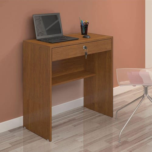 Escrivaninha andorinha é mais um produto super compacto. Ideal para qualquer ambiente, possui funcionalidade bem definida e gaveta com corrediça telescópica. Costa e fundo de gaveta HDF 2,8 mm e restante MDP 15 mm. Acabamento da Gaveta: Pintura Acabamento da Porta: Acabamento da Prateleira: Acabamento dos Pés: Altura dos Pés: Ambiente Principal: Escritório Complexidade da Montagem: Baixa: pode ser montado por uma pessoa sozinha Cor: Cinamomo Cor da Base: Amarelo Cor do Produto: Cinamomo Cor do Tampo: Amarelo Cor Flex: Cor Interna: Escala de Brilho: Fosco Escala de Brilho da Gaveta: Brilhante Escala de Brilho da Porta: Escala de Brilho da Prateleira: Espessura do Tampo: 15 Formato: Retangular Gaveta com Chave: 01 Informações Complementares: Itens Inclusos: 1 Escrivaninha, Kit Ferragens e Manual de Montagem Largura Frontal: Largura Lateral: Linha ou Coleção: Manual de Especificação Técnica: Manual de Montagem e Instalação: http://www.jcmmovelaria.com.br/sistema/produto_arq/MesaAndorinhaJCMPassoaPassoF8.pdf Material da Gaveta: MDP Material da Porta: Material da Prateleira: Material do Puxador da Gaveta: Material do Puxador da Porta: Material dos Pés: Material Principal: MDP Montagem Flex: Necessita Montagem: Sim Origem do Produto: Nacional Pés com Regulagem de Altura: Pés Reguláveis: Peso: 13.2 Peso Máximo por Gaveta: 4 Peso Máximo por Prateleira: Possui Passa Cabos: Não Possui Pés: Não Possui Portas: Não Possui Prateleiras: Não Possui suporte para CPU: Não Possui Suporte para Teclado: Não Quantidade de Nichos: Recomendações de Uso, Manutenção e Limpeza: Limpeza com pano umedecido. Não aplicar lustra móveis. Rodízio com Trava: Sapatas Niveladoras: Sim Sistema de Montagem: Parafusos e Minifix. Suporta Até (kg): 25 Tema da Estampa: Tipo de Corrediça da Gaveta: Metálica Telescópica Tipo de Dobradiça/Corrediça da Porta: Tipo de Madeira Maciça: Tipo de Madeira Maciça da Gaveta: Tipo de Madeira Maciça da Porta: Tipo de Madeira Maciça da Prateleira: Tipo de Madeira Maciça do Puxador da Gaveta: Tipo de Madeira Maciça do Puxador da Porta: Tipo de Madeira Maciça dos Pés: Tipo de Puxador da Gaveta: Embutido Tipo de Puxador da Porta: