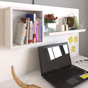 O painel fixo à escrivaninha contém um nicho e uma prateleira, para que você possa organizar ainda melhor seu espaço, com decorações, livros e materiais sempre à mão. Além disso, assim você não danifica sua parede com furos e riscos.