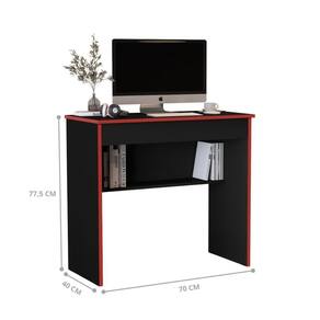 ALTURA DO PRODUTO (CM): 77,5 | ALTURA DO PRODUTO COM EMBALAGEM (CM): 8 | CÔMODO INDICADO: Escritório | COMNTO DO PRODUTO (CM): 40 | COMNTO PRODUTO COM EMBALAGEM (CM): 78 | CONTEÚDO DA EMBALAGEM: 1 Escrivaninha | CORES DO PRODUTO (FILTRO DE CORES): Preto/Vermelho | COR PREDOMINANTE: Preto | DESCRIÇÃO DO TAMANHO: 77,5x70x40 | ESTADO DE ORIGEM: SP | FORMATO: Retangular | INSTRUÇÕES/CUIDADOS: Limpar com flanela ou pano macio seco, não utilizar produtos abrasivos, desengordurantes, álcool ou solvente. Não expor o produto diretamente à luz solar e à umidade | LARGURA DO PRODUTO (CM): 70 | LARGURA PRODUTO COM EMBALAGEM (CM): 43 | MARCA: Casa H | MATERIAL PARA FILTRO: MDP | MATERIAL PRINCIPAL: MDP | PESO DO PRODUTO (KG): 12,3 | PESO PRODUTO COM EMBALAGEM (KG): 12,3 | PRODUTO: Escrivaninha | PRODUTO PRECISA DE MONTAGEM?: Sim, a montagem é facil mas sugerimos a contratação de um montador para a montagem do produto. Não nos responsabilizamos por danos cas no ato da montagem. | QUANTIDADE DE GAVETAS: 1 | QUANTIDADES DE CAIXAS DE EMBALAGEM: 1